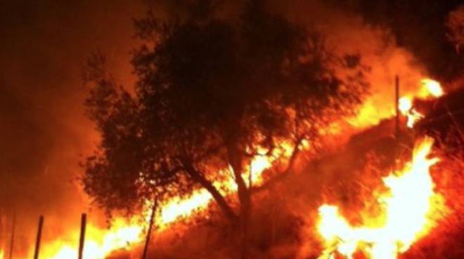 Ancora roghi nel teramano. Un incendio a Atri devasta 8 ettari con centinaia di ulivi. Ferito un vigile del fuoco