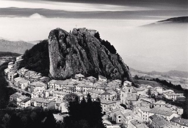 L’Abruzzo è conosciuto come “regione verde d’Europa”, per via del suo sistema di parchi e riserve naturali che tutela più di un terzo del proprio territorio; presenta uno dei più alti indici di biodiversità in Europa ed è tra le aree floristicamente più ricche nel mondo. Michael Kenna è stato notevolmente colpito dalla magnificenza dell’Abruzzo, dalla sua diversità paesaggistica e dall’intrigante stile di vita che ancora si coglie in vaste aree della regione, dove il rapporto tra l’uomo e la natura sembra riaffiorare da un lontano passato. Qui lui ha trovato un’identità culturale che altrove, in gran parte, si sta perdendo sotto i colpi della globalizzazione e della comunicazione istantanea. Kenna ha fotografato rovine medievali, antichi borghi e un paesaggio ricco di coltivazioni tradizionali; ha vagato attraverso luoghi sereni e poetici in cui è ancora possibile fermarsi a meditare, godendo della bellezza rigenerante del silenzio, mentre si coglie il senso della storia trasmesso da questi paesaggi.