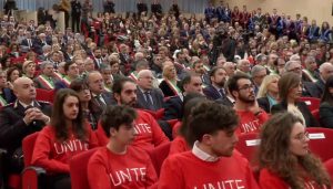 (La sala gremita di studenti, sindaci, accademici, istituzioni)