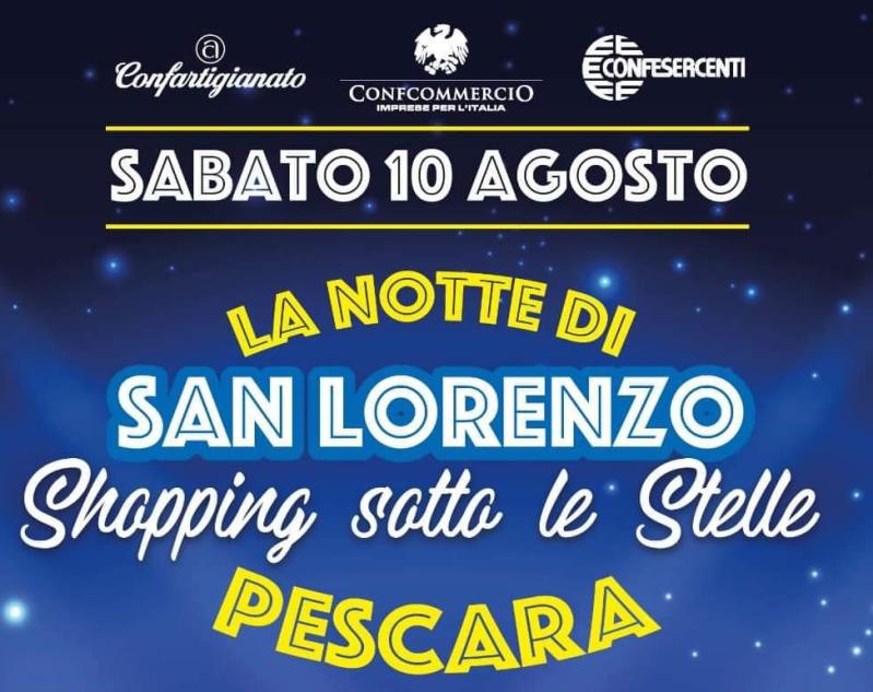 “La notte di San Lorenzo- Shopping sotto le stelle”: l’iniziativa si terrà a Pescara sabato 10 agosto fino a tarda serata.