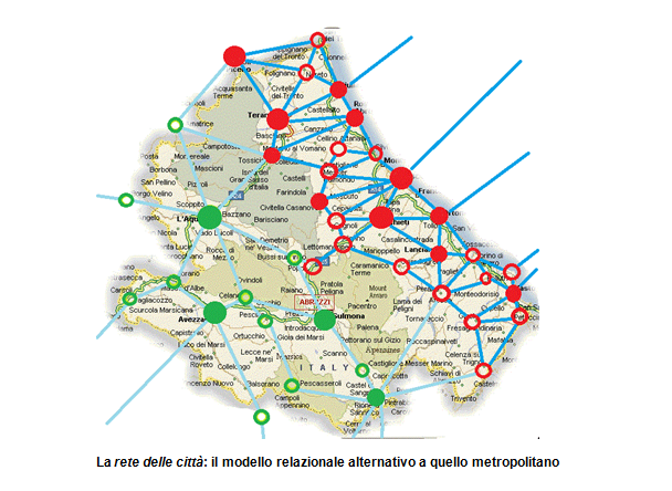 Di più facile governance, al contrario, sono, o possono essere, i territori costituiti da reti di città piccole e medie (come l’Abruzzo, o come il territorio marchigiano o quello molisano o lucano, o l’intero territorio appennico) in quanto permettono di sviluppare condivisione e coordinamento di politiche virtuose per la tutela dell’ambiente urbano senza mai annullare l’identità delle singole città, dei singoli poli della rete, al contrario rafforzandole e sviluppandone la coesione. Perciò, non di una nuova più grande città avremmo bisogno, ma di una adeguata governance dell’area vasta dell’Abruzzo Adriatico, a partire proprio dalla difesa del suo carattere policentrico. Carattere che rappresenta anche il suo valore specifico, la sua ricchezza ignorata. Come sostiene Cacciari nel suo saggio sulla città infinita: “Non abbiamo bisogno di nuovi «centri» ma di creare una «rete» che combini decisione a partecipazione, concertazione a progettualità.