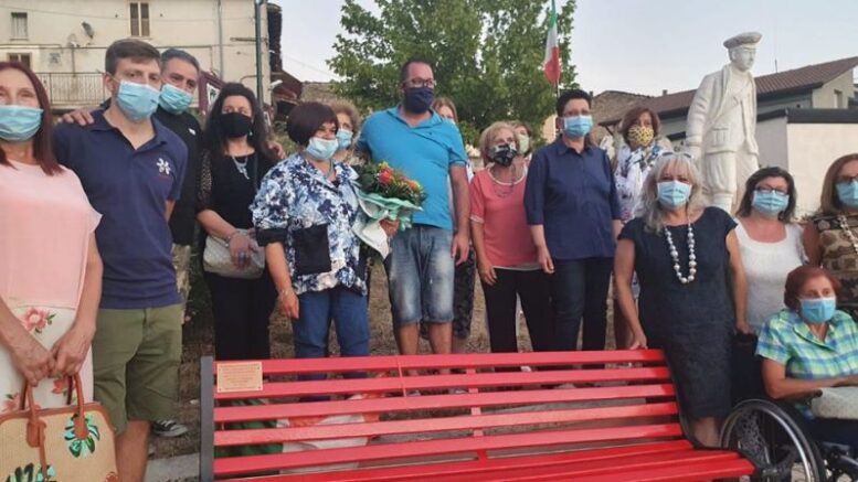 In tanti hanno partecipato all’inaugurazione della panchina rossa – 1522 ( numero nazionale antiviolenza, attivo h24 ) a Monticchio, frazione dell’Aquila.