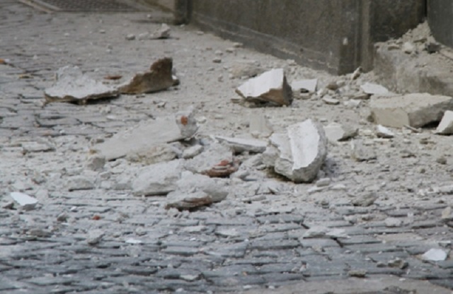Paura domenica sera a Lanciano in Vico 44. Un cornicione cade da un palazzo in abbandono. Erano appena passati tre pedoni.