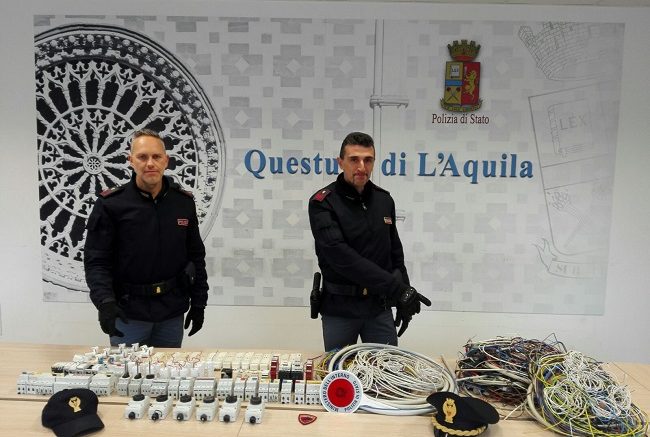 Le indagini, condotte dalla squadra volante, coordinata dal dirigente commissario capo Roberto Mariani, hanno consentito di appurare che il materiale era stato prelevato dal progetto Case di Sassa e che la refurtiva sarebbe stata destinata alla vendita nella zona della Marsica.