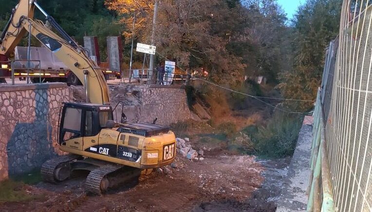 È stato abbattuto il ponte sul torrente Raiale a Paganica, che collega la strada statale 17 bis e via Cesare Battisti, chiuso da settembre 2018