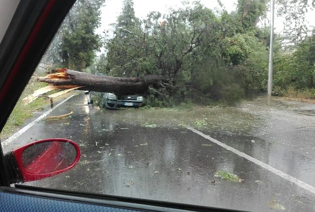 Trombe d’aria, grandinate e tempeste di fulmini si sono abbattuti con furia inaudita soprattutto sugli alberi, letteralmente piovuti dal cielo, come accaduto a Brecciarola di Chieti, dove un grosso cipresso è precipitato su un’auto in transito sulla tiburtina. Miracolosamente illeso il conducente.