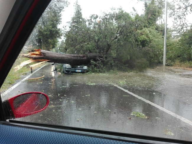 Trombe d’aria, grandinate e tempeste di fulmini si sono abbattuti con furia inaudita soprattutto sugli alberi, letteralmente piovuti dal cielo, come accaduto a Brecciarola di Chieti, dove un grosso cipresso è precipitato su un’auto in transito sulla tiburtina. Miracolosamente illeso il conducente.