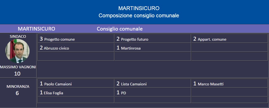 Nessuna sorpresa rispetto al primo turno a Martinsicuro, dove -pur recuperando- il sindaco uscente Paolo Camaioni cede le armi a Massimo Vagnoni, alla guida di una coalizione civica. Soddisfatto il nuovo sindaco, sospinto dal vento del rinnovamento. Per Vagnoni è ora di “cambiare Martinsicuro, riportando partecipazione e lavoro”.
