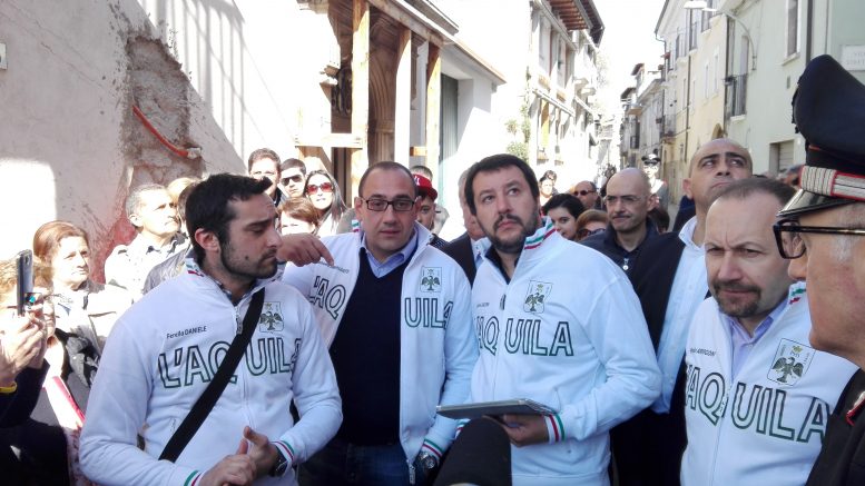 A pochi giorni dal 7° anniversario del sisma, e ad un anno dalla sua ultima visita Matteo Salvini è oggi a L’Aquila, accompagnato dal Sen. Paolo Arrigoni, responsabile regionale di Noi con Salvini, da Armando Siri, responsabile economico e ideologo della Flat Tax, e da altri responsabili del Movimento NcS.