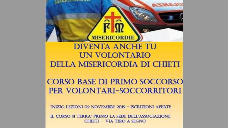 “Diventa anche Tu un Volontario della Misericordia di Chieti…insieme tutto pesa la metà” lo slogan per promuovere la nuova iniziativa dell’associazione Misericordia di Chieti, il Corso di Primo Soccorso per diventare volontari-soccorritori.