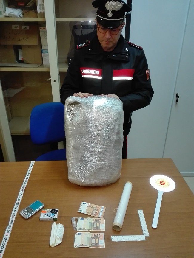 Il 32enne, Mare George Adrain, nato in Romania nel 1985, risiedeva a Teramo ma da poco viveva a Montesilvano in corso Umberto. I carabinieri lo hanno pedinato e osservato per più giorni e ieri pomeriggio, intorno alle 18 sono entrati in azione, perquisendo l’abitazione del giovane in corso Umberto. All’interno dell’appartamento i militari hanno trovato e sequestrato: un involucro di cellophane di grosse dimensioni con dentro cinque chili di marijuana imballata; un cofanetto contenente una singole dose di sostanza stupefacente di circa due grammi; un bilancino di precisione; tre banconote contraffatte di cinquanta euro.