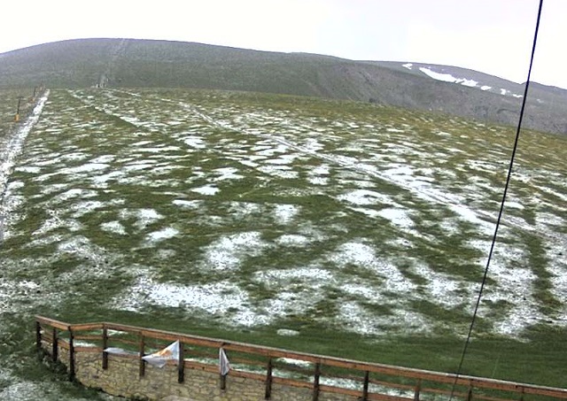 Neve sulla Maiella, a Monte Amaro, (2793 m.), e violenta grandinata che ha ricoperto la strada di pochi centimetri di bianco al Rifugio Pomilio, sempre sulla Maielletta (foto alla base degli impianti della Majelletta). Grandine anche in altre parti dell’Abruzzo, da Campli a Bellante. Brusco calo di temperature e forti temporali all’Aquila con allagamenti di sottopassi.
