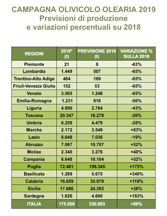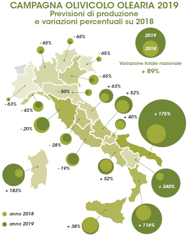 Qualità eccellente e il 52% di raccolto in più rispetto alla disastrosa annata del 2018. E’ quanto emerge sulla produzione di olio extravergine d’oliva in Abruzzo dall’indagine esclusiva eseguita dagli osservatori di mercato di Cia – Agricoltori Italiani, Italia Olivicola e Associazione italiana frantoiani oleari.