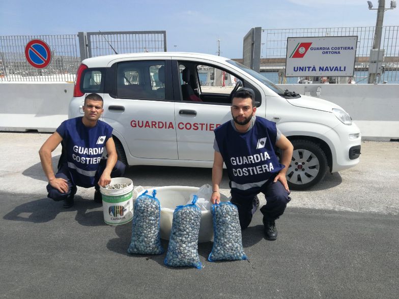 Sequestrate e rigettate in mare dagli uomini della Capitaneria di Ortona vongole destinate allo smercio illegale. Multe salate a due armatori.