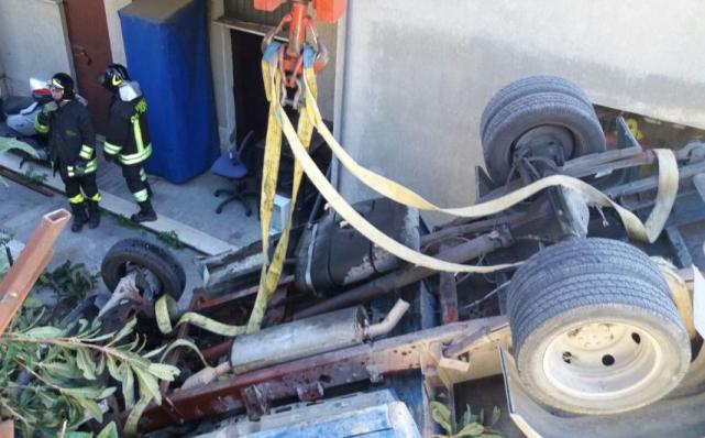 E’ accaduto nel primo pomeriggio in via D’Annunzio. Il furgone di proprietà di un’impresa che sta effettuando lavori stradali e da tempo in sosta lungo la via, all’improvviso si è sfrenato e dopo aver percorso un breve tratto in leggera discesa, è uscito di strada sfondando una recinzione. Il veicolo senza controllo è precipitato in uno stretto cortile, a ridosso dell’abitazione, rischiando di travolgere e uccidere chiunque si trovasse sulla traiettoria. Il bilancio per fortuna è relativo solo ai danni subiti dal mezzo, senza feriti, perché né a bordo del mezzo, né all’interno del cortile, c’erano persone al momento dell’incidente. Dal furgone fuoriusciva del gasolio del serbatoio, che i vigili del fuoco intervenuti hanno prontamente provveduto ad arginare. Successivamente hanno provveduto a recuperare il mezzo ribaltato con un’autogru.