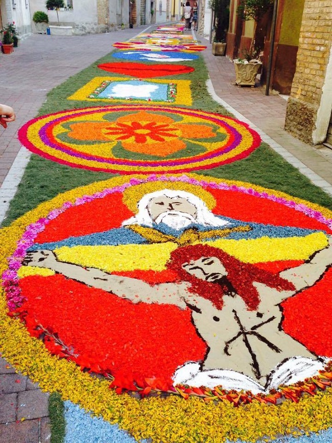 I petali di fiori raccolti nei campi andranno a comporre quadri dalle tematiche sacre e profane che si rincorreranno per tutto il corso del borgo della provincia teatina.