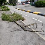 - L’albero “adagiato” sul marciapiede in via Aldo Moro.