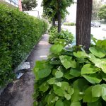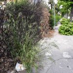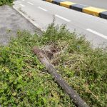 - L’erba delle aiuole che ha invaso il marciapiede.