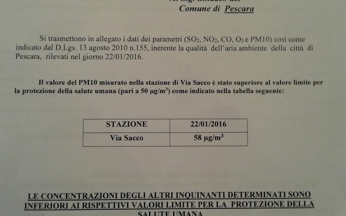 Pescara, aria ancora scadente: gli ultimi dati consegnati al Comune dall’Arta (ma non ancora caricati sul sito dell’Agenzia) confermano il perdurare di una situazione critica. Via Sacco sempre scadente.