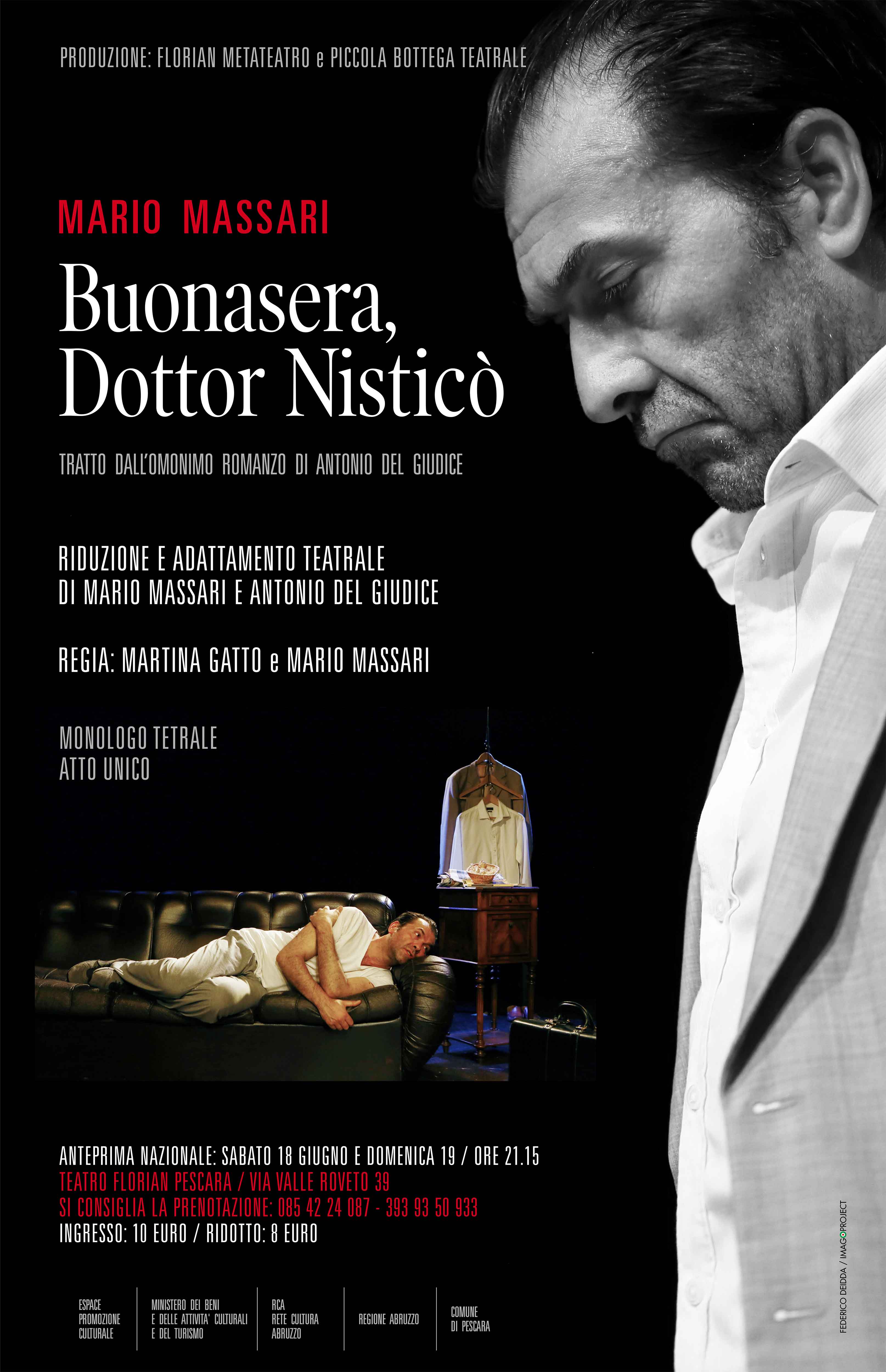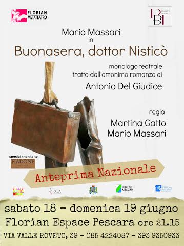 Andrà in scena sabato 18 giugno alle 21,15 al Florian di Pescara, in anteprima nazionale, il monologo teatrale “Buonasera, dottor Nisticò”, tratto dall’omonimo romanzo di Antonio Del Giudice.