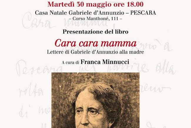 La nuova opera letteraria dell’attrice Franca Minnucci, grande studiosa del Vate, sarà presentata al pubblico martedì 30 maggio alle ore 18 presso la casa natale di Gabriele d’Annunzio a Pescara in corso Manthoné, in occasione dell’allestimento della mostra “Cara cara mamma” in omaggio alla “mater mirabilis” del letterato abruzzese nel centesimo anniversario della scomparsa.