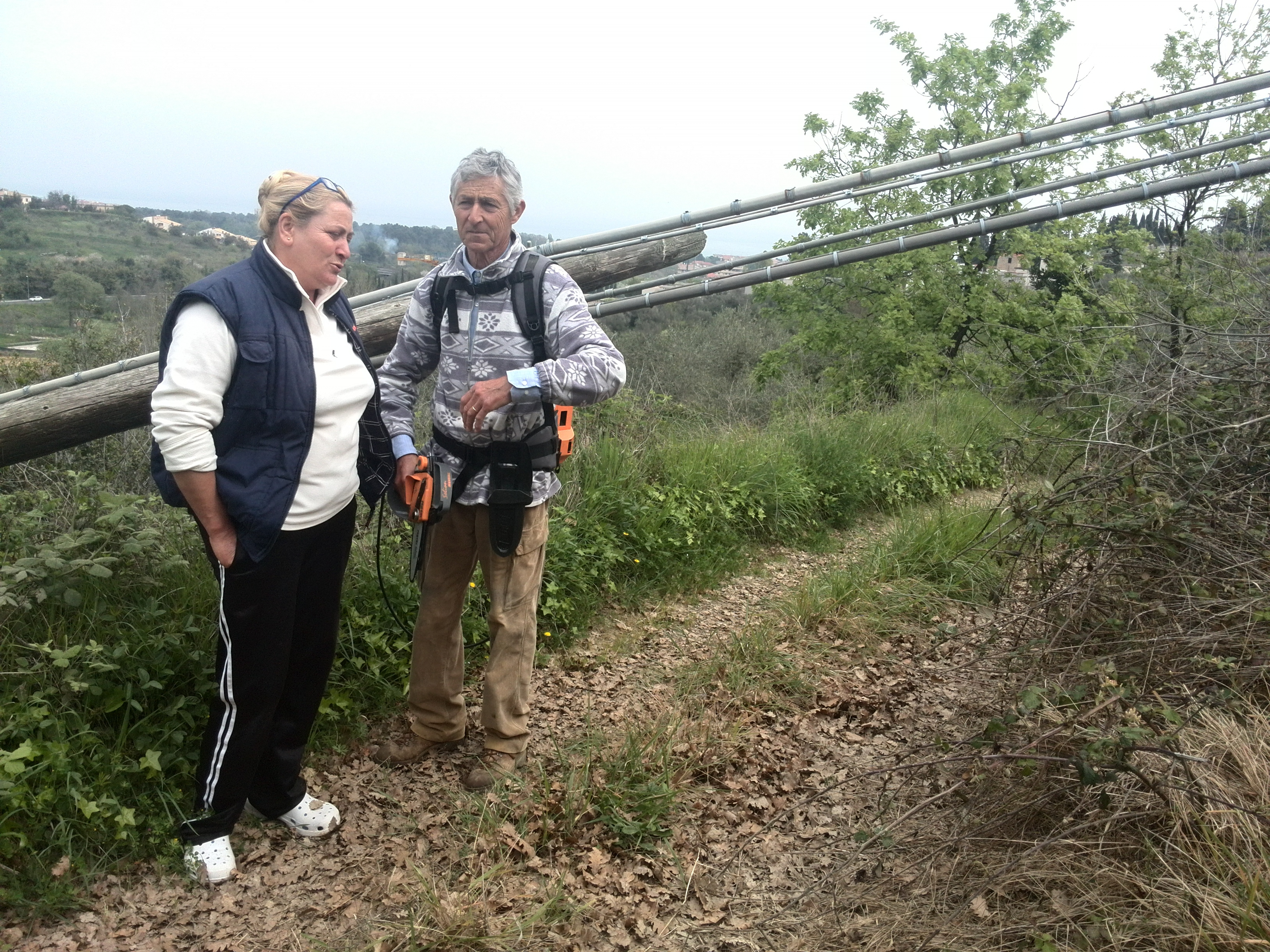 Alessandro Martinelli e Mirella Finocchio hanno sollecitato la Telecom più volte, ma i pali, caduti a seguito dei forti venti sulla strada di accesso alle campagne di loro proprietà, sono ancora lì, a sbarrare il passo.
