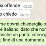 «Forse dovrei chiederglielo io se lei è italiano, dato che non mette neanche un punto interrogativo alla fine di una domanda», risponde Mania in chat.