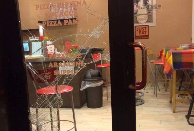 Ad essere presa di mira la notte scorsa a Pescara è stata la pizzeria “Lo zio” in Via Cavour. Attorno alla mezzanotte e mezza è stata frantumata la porta in vetro del locale (nella foto) ed un uomo ha fatto irruzione all’interno, fuggendo poi a bordo di un motorino. Ancora da quantificare il bottino. A ricostruire la dinamica dell’effrazione sono state le telecamere di sorveglianza. Le indagini sono in corso.
