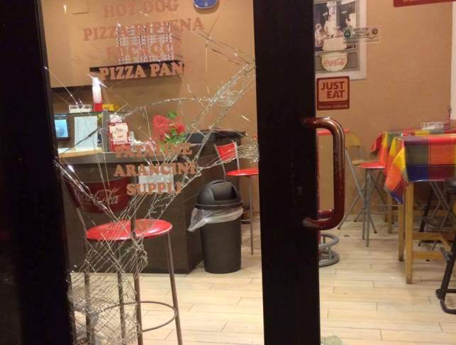 Ad essere presa di mira la notte scorsa a Pescara è stata la pizzeria “Lo zio” in Via Cavour. Attorno alla mezzanotte e mezza è stata frantumata la porta in vetro del locale (nella foto) ed un uomo ha fatto irruzione all’interno, fuggendo poi a bordo di un motorino. Ancora da quantificare il bottino. A ricostruire la dinamica dell’effrazione sono state le telecamere di sorveglianza. Le indagini sono in corso.