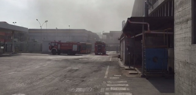 E’ stato già circoscritto e domato con l’utilizzo di due autobotti dei Vigili del Fuoco (nella foto) l’incendio sviluppatosi intorno alle 14 nel capannone della TUA (Ex Gtm) a Pescara. Quasi certamente per cause accidentali hanno preso fuoco due autobus vicini tra di loro. Uno di essi in particolare era nel reparto verniciatura della rimessa. Subito il personale addetto si è messo in salvo ed ha allertato i Vigili del Fuoco, immediatamente intervenuti. Alta la colonna di fumo e fiamme che si è sviluppata ed è stata visibile in tutta la città. Le fiamme sono state prima circoscritte e successivamente domate nell’arco di un’ora circa. Saranno proprio i Vigili del Fuoco ad effettuare la perizia per l’accertamento delle cause dell’incendio. Distrutti i due mezzi coinvolti.