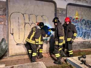 Le squadre hanno perlustrato l’interno della struttura per verificare l’eventuale coinvolgimento di persone. L’intervento è durato alcune ore. Agenti della Polizia di Stato e della Polizia locale sono intervenuti per la gestione della viabilità.