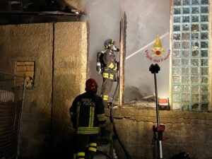 Le squadre hanno perlustrato l’interno della struttura per verificare l’eventuale coinvolgimento di persone. L’intervento è durato alcune ore. Agenti della Polizia di Stato e della Polizia locale sono intervenuti per la gestione della viabilità.