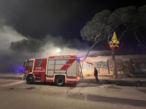 Un violento incendio si è sviluppato a Pescara in una zona abitualmente occupata da senzatetto in Via Andrea Doria, nell’area portuale