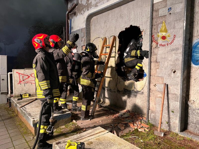 Le squadre hanno perlustrato l’interno della struttura per verificare l’eventuale coinvolgimento di persone. L’intervento è durato alcune ore. Agenti della Polizia di Stato e della Polizia locale sono intervenuti per la gestione della viabilità.