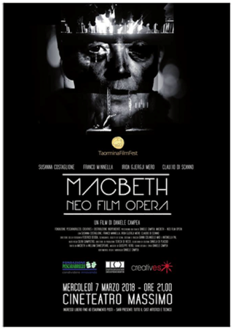 Al teatro Massimo di Pescara, mercoledì 7 marzo alle ore 21 sarà proiettato il lungometraggio “Macbeth neo film opera” per la regia di Daniele Campea. Ingresso libero fino a esaurimento posti.