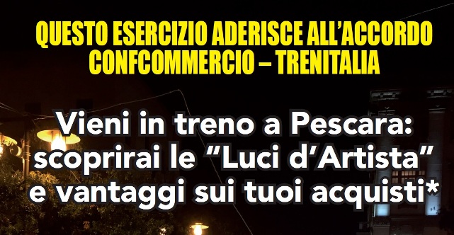 L’accordo prevede un’ampia comunicazione dell’iniziativa da parte di Trenitalia nelle stazioni, sui portali di prenotazione e sui treni stessi anche alla luce del nuovo orario dei treni regionali in vigore dallo scorso 11 dicembre che prevede una maggiore frequenza di treni sulla linea adriatica. In particolare i treni regionali che convergeranno su Pescara da nord, e quindi da Alba Adriatica in giù, partiranno con una frequenza media di uno ogni 20’ realizzando nei fatti una sorta di metropolitana di superficie; ma lo stesso può dirsi per i treni provenenti da San Salvo in su che avranno una frequenza media di uno ogni 30’. L’attrazione delle Luci d’Artista e l’opportunità di fare shopping a condizioni vantaggiose, riservate ai possessori del biglietto ferroviario dagli esercizi aderenti, possono rappresentare, spiega Confcommercio- ulteriori incentivi per scegliere la comodità dei treni regionali per raggiungere Pescara.