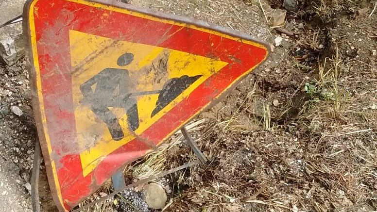 - Il cartello stradale che indica il restringimento della carreggiata.