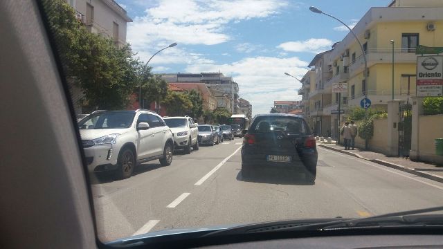 Lunghe code in tutta la zona di Portanuova a Pescara: in via Bardet in corso i lavori di asfaltatura che chiudono tutta la strada e si intasano le vie alternative