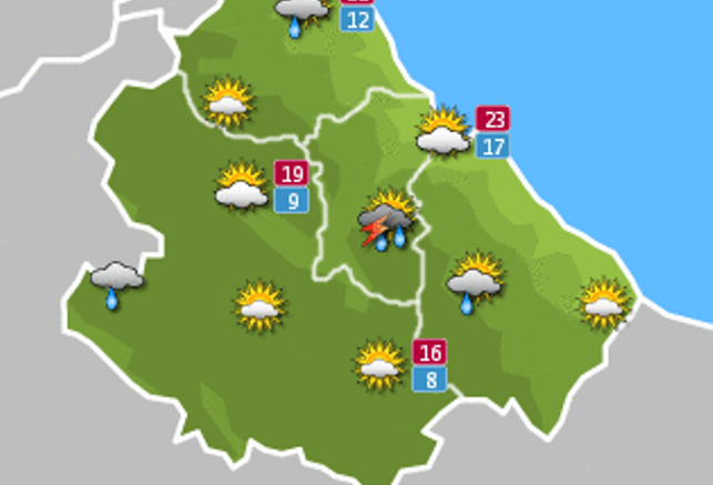 A Pescara e nel suo hinderland nubi sparse e temperature da 17 a 22 °C. Minori probabilità di pioggia, con venti moderati da Est