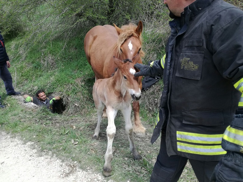 Stamattina una squadra dei vigili del fuoco del Comando di Teramo è intervenuta nel comune di Rocca Santa Maria, lungo la strada che porta alla frazione di Acquaratola, per soccorso ad un puledro. La richiesta di intervento è giunta alla centrale operativa 115 da parte di alcuni ciclisti in mountain bike, che, percorrendo la strada di montagna, hanno notato una cavalla lasciata libera, che ha attirato la loro attenzione verso un tombino, al cui interno era caduto il suo puledro di appena tre giorni. Appena giunti sul posto, alcuni vigili del fuoco hanno raggiunto subito il tombino, mentre altri colleghi sono stati impegnati a tenere a bada la cavalla, che si è mostrata particolarmente agitata. Dopo alcuni tentativi i vigili del fuoco sono riusciti faticosamente a recuperare il puledro, apparso in buone condizioni fisiche.