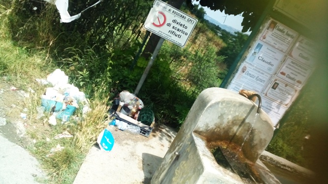 C’è il divieto di scarico rifiuti ma non è presente nessun bidone per gettare la spazzatura. Ogni giorno In questo posto si fermano decine di persone persone per bere.. Non é uno scenario da vedere… Vi invio questa foto sperando di poter segnalare questo caso di indecenza a chi di dovere.