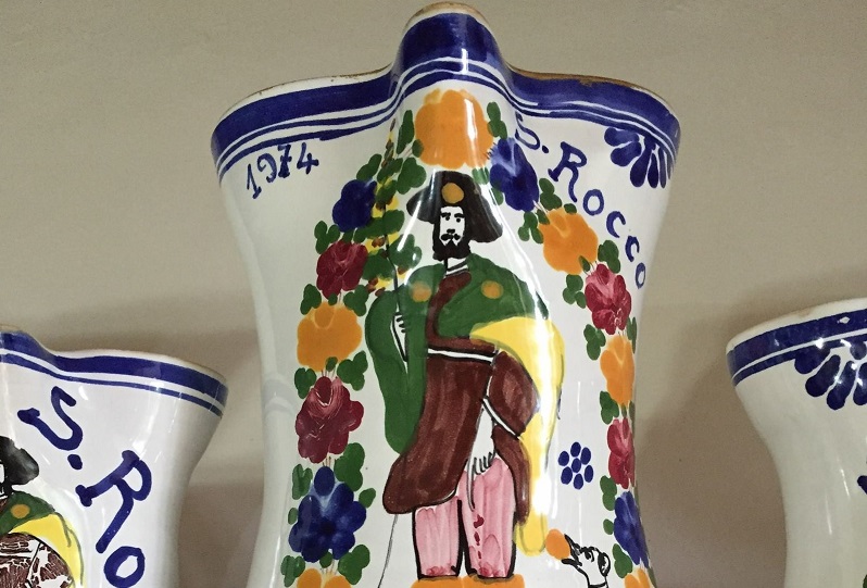 La festività agostane a cui intervenivano migliaia di visitatori sono state sospese ma il radicato culto verso San Rocco non si ferma, compresa la vendita delle brocchette di ceramica che quest’anno, saranno listate a lutto con il bordo nero.