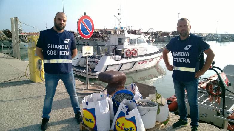 Dopo un inseguimento in porto sequestrati dalla Guardia Costiera 2 quintali di vongole a Giulianova.