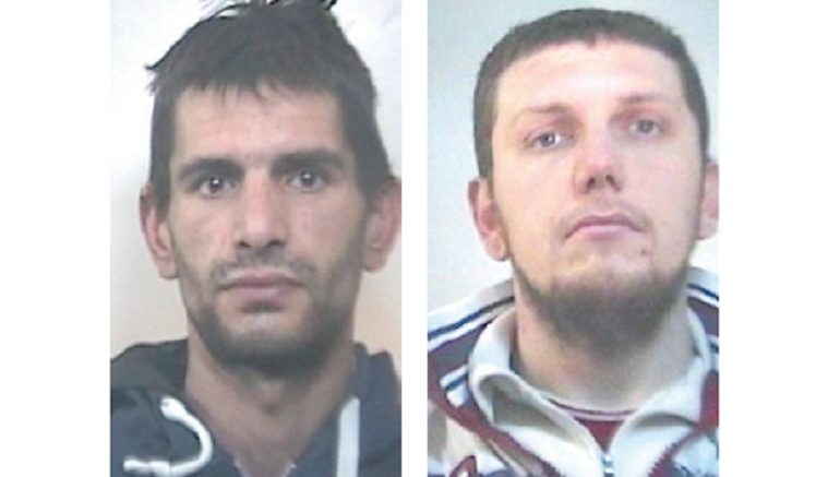 Si tratta di un 34enne di Collecorvino, Davide Di Mastrogirolamo, e un 33enne di Atri, Daniele Prosperi (da sinistra a destra nella foto. Alla vista dei militari i due hanno accelerato improvvisamente, dandosi alla fuga. Immediatamente è iniziato l’inseguimento che è proseguito a velocità sostenuta nelle strade limitrofe; i due fuggitivi, nonostante inseguiti con l’uso di sirene e lampeggianti, non solo non hanno accennato a fermarsi ma hanno compiuto una serie di manovre spericolate, tra le quali tentativi di speronamento della macchina di servizio, mettendo in pericolo l’incolumità di altri automobilisti. Dopo aver abbandonato l’auto in una zona di campagna i due fuggiaschi invece hanno proseguito per qualche metro la fuga a piedi prima di essere intercettati e fermati con l’ausilio di una pattuglia della Squadra Volanti della Questura di Pescara. All’interno dell’auto, abbandonata precedentemente, e che è risultata rubata, i militari hanno rinvenuto una bicicletta del valore di 3mila euro, un martello pneumatico ed un trapano, tutti oggetto di furto, e già restituiti.