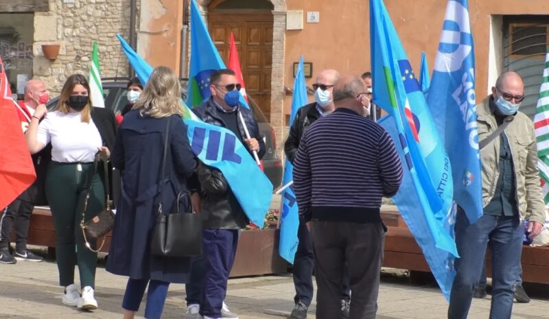 Anche a Teramo i sindacati Cgil, Cisl e Uil nel giorno della festa del Primo Maggio sono scesi in piazza Sant’Anna per la festa dei lavoratori.
