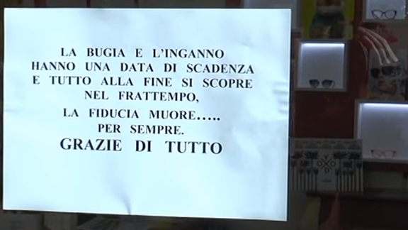 Non solo la protesta, ma anche la proposta da parte dei titolari degli esercizi commerciali di una strada che il Comune, affermano, ha totalmente trascurato: nessun intervento per la manutenzione pubblica e nessun rispetto delle norme sulla durata della sosta nella ZTL, con auto che occupano la strada per l’intera giornata. Gli esercenti hanno proposto una soluzione che potrebbe conciliare le esigenze di tutti: al mattino la libera circolazione e nel pomeriggio, a partire dalla riapertura dei negozi, l’istituzione di un’isola pedonale chiudendo il varco. E così in Via Capuani, dopo l’ultimo incontro andato a vuoto, non sono stati rimossi i significativi cartelli affissi alle vetrine: “La bugia e l’inganno hanno una data di scadenza. E tutto alla fine si scopre. Nel frattempo…la fiducia muore per sempre. Grazie di tutto”.