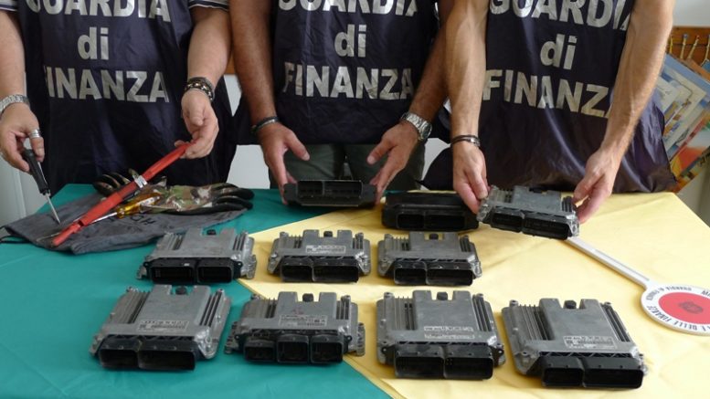 I Finanzieri, insospettiti per l’orario di transito e per i precedenti specifici dei soggetti fermati, hanno perquisito l’autovettura, rinvenendo, ben occultate nel cofano motore in un vano posto sotto il parabrezza, ben 10 centraline elettroniche manomesse per autovetture e diversi attrezzi da scasso, prontamente sottoposti a sequestro. Le centraline erano compatibili con modelli di autovetture tipo Volkswagen/Audi e Citroen/Peugeot. I responsabili sono stati, pertanto, segnalati alla Procura della Repubblica presso il Tribunale di Teramo, per il reato di “ricettazione” ex art. 648 cp.