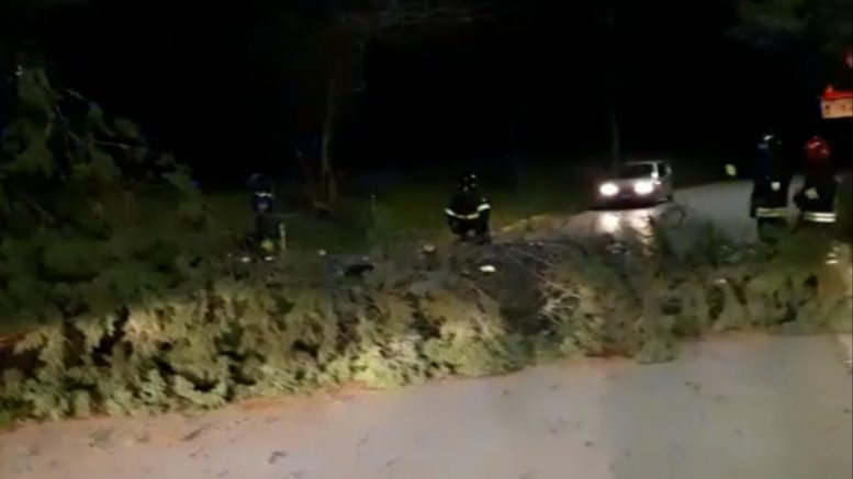 Nella foto un intervento effettuato dal Distaccamento dei vigili del fuoco di Roseto degli Abruzzi, intervenuto con due mezzi e 5 uomini sulla SP27, tra Torre San Rocco di Pineto e Casoli di Atri, a causa di un cipresso che è caduto sulla sede stradale ostruendo completamente la carreggiata