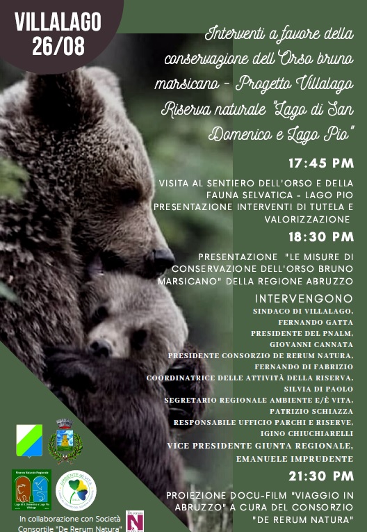 Il Comune di Villalago ed Ambiente e/è Vita Abruzzo Onlus, soggetto convenzionato per la governance della Riserva Naturale Regionale Lago di San Domenico e Lago Pio, in attuazione alle disposizioni legislative della L.R. 15/2016 ed al correlato finanziamento concesso dalla Regione Abruzzo per un progetto denominato “Interventi di conservazione dell’ Orso Bruno Marsicano nella riserva naturale regionale del lago di San Domenico e del lago Pio e nelle immediate vicinanze”, hanno realizzato una serie di interventi volti alla conservazione dell’Orso Bruno Marsicano ed alla fauna selvatica in generale.