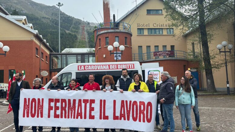 1° maggio a Fonte Cerreto per la Cgil e i lavoratori di varie vertenze sindacali. Un modo per portare l’attenzione, ancora una volta, sulla situazione della funivia ferma da oggi e sulla sorte dei lavoratori del centro turistico